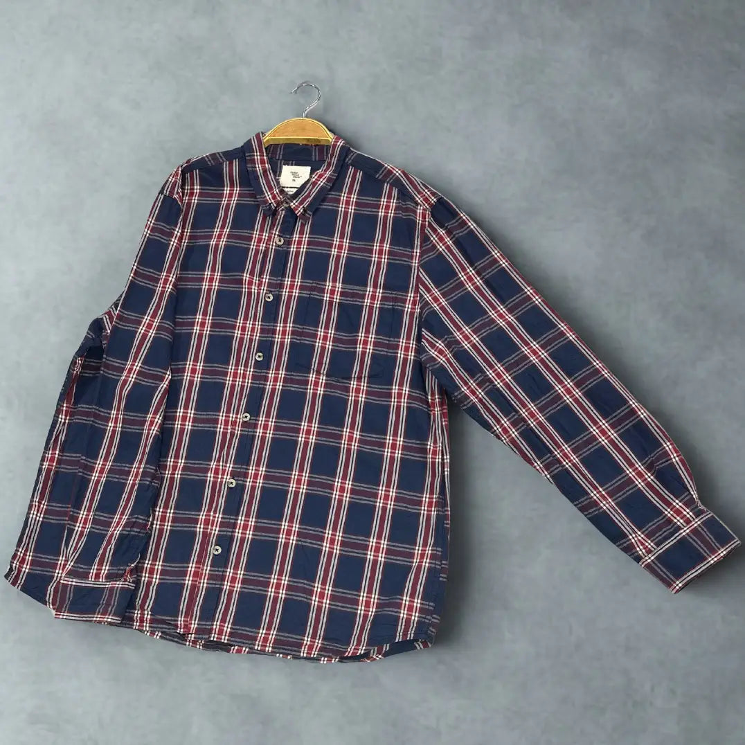 This is a classic and comfortable long-sleeve flannel shirt from Cedar Wood State, a brand by Primark. It features a timeless and versatile plaid pattern in a popular color combination of navy blue, deep red, and white.