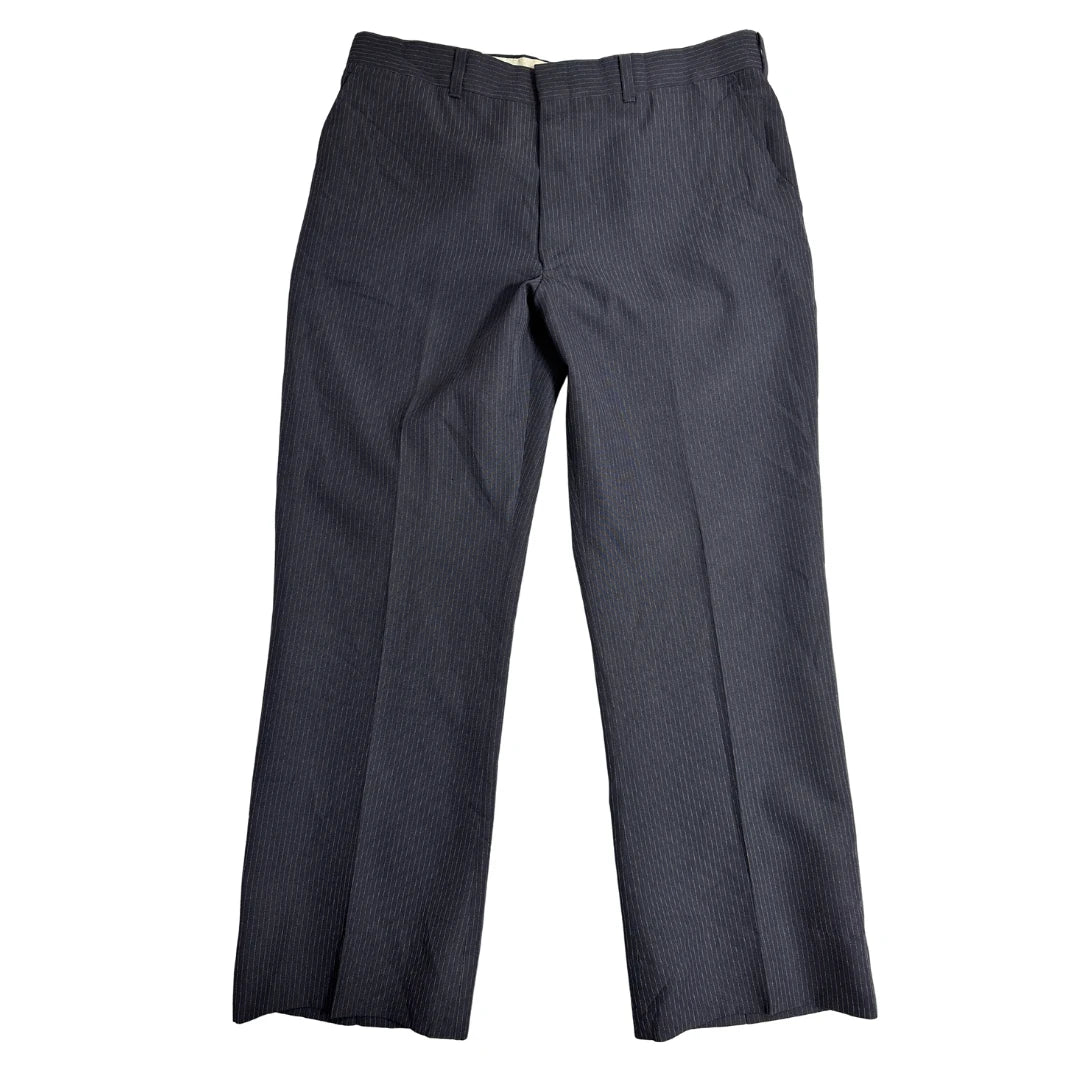 Sharp pinstripe pants made for office wear meetings and formal occasions Clean structured look with a professional vibe Easy to pair with shirts blazers and dress shoes