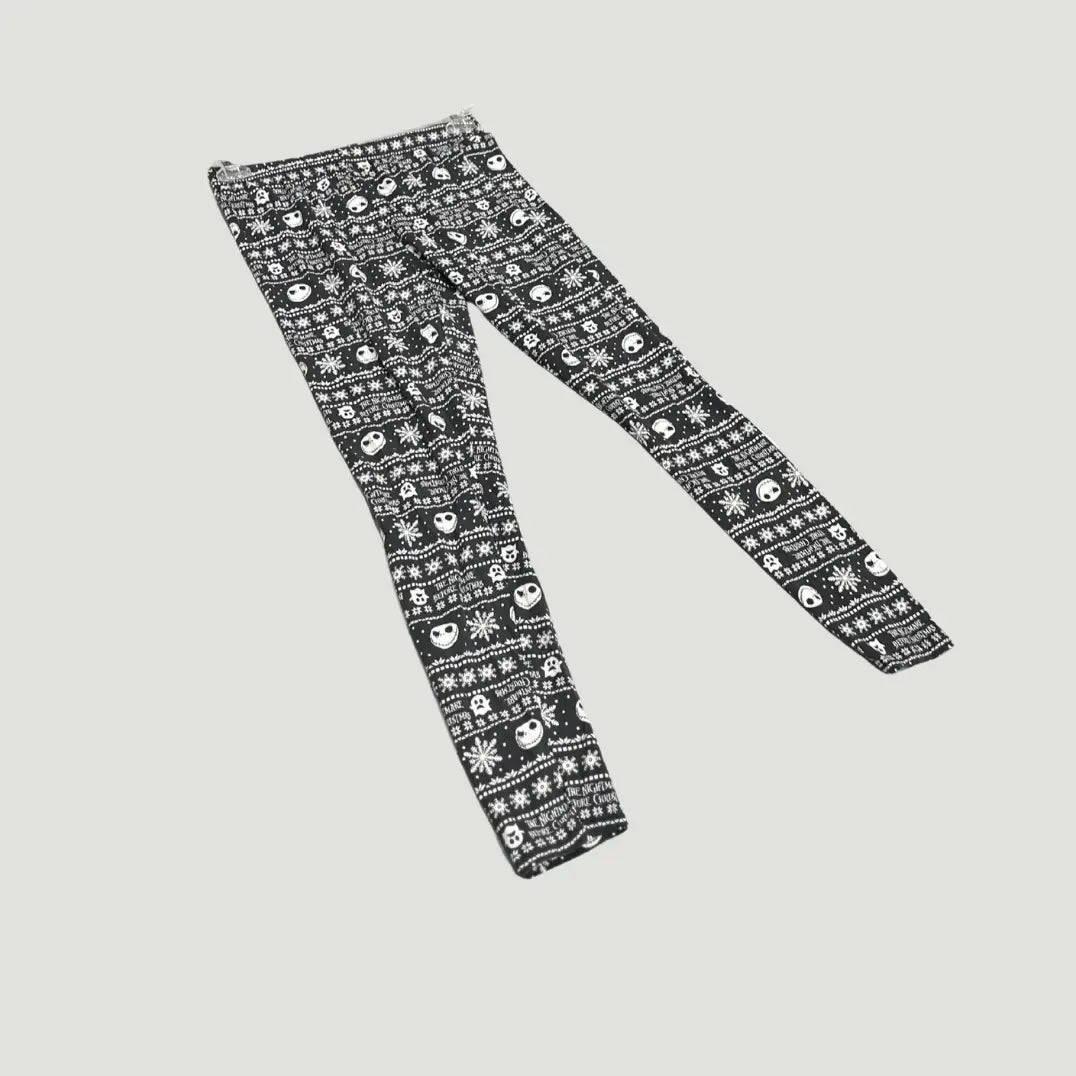 Black and white pattern featuring Jack Skellington faces, snowflakes, and other elements from The Nightmare Before Christmas.