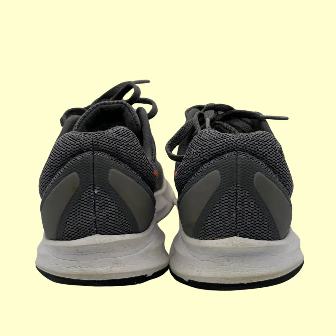 A reliable pair of original Nike Downshifter 7 running shoes featuring a breathable mesh upper and lightweight cushioning. The grey base with an orange Nike swoosh gives a sporty, standout look. Preloved with normal signs of wear, ideal for daily walking, jogging, or casual use.